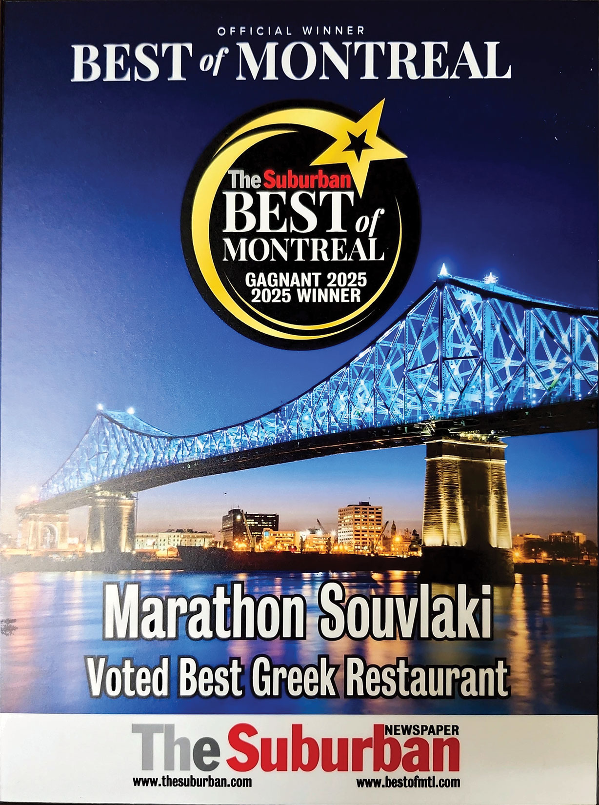 Reviews OUR MENU Entrées Salads Souvlaki Our plates Desserts Extras Beverages, Wine & Beer Kids Menu Lunch Specials LINKS Home Locations Reviews Contact us History Français Prices are subject to change without notice. Website by: